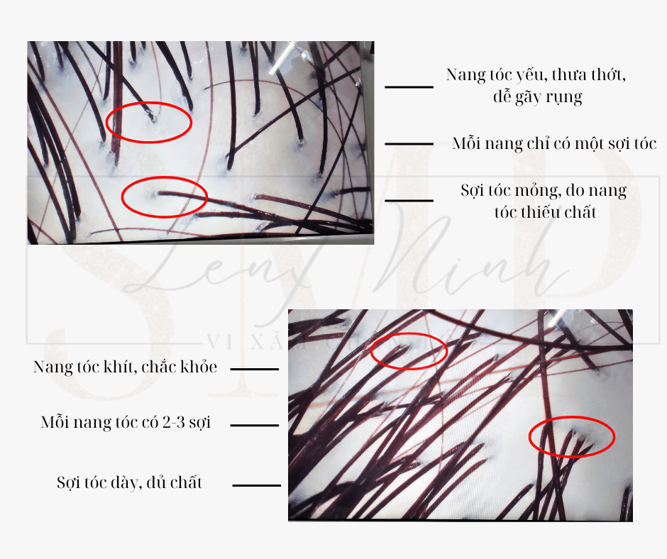 Đối với tóc mỏng bẩm sinh thì thường 1 nang tóc chỉ có 1 sợi tóc, sợi tóc mỏng thưa thớt khiến mái tóc chúng ta không được dày dặn, bồng bềnh.
